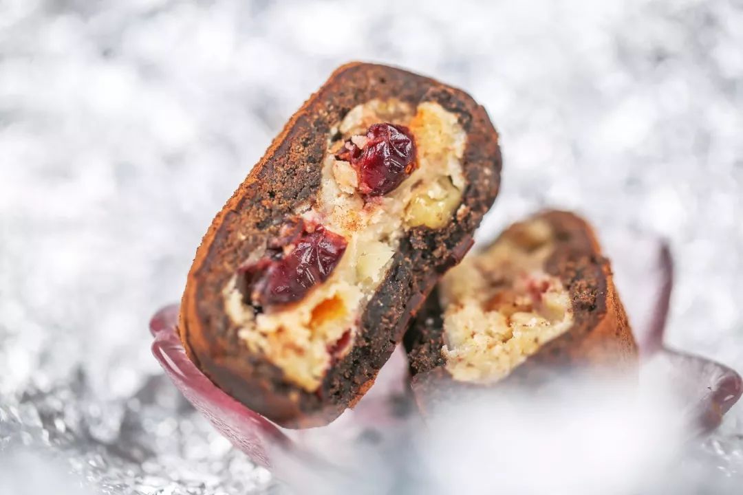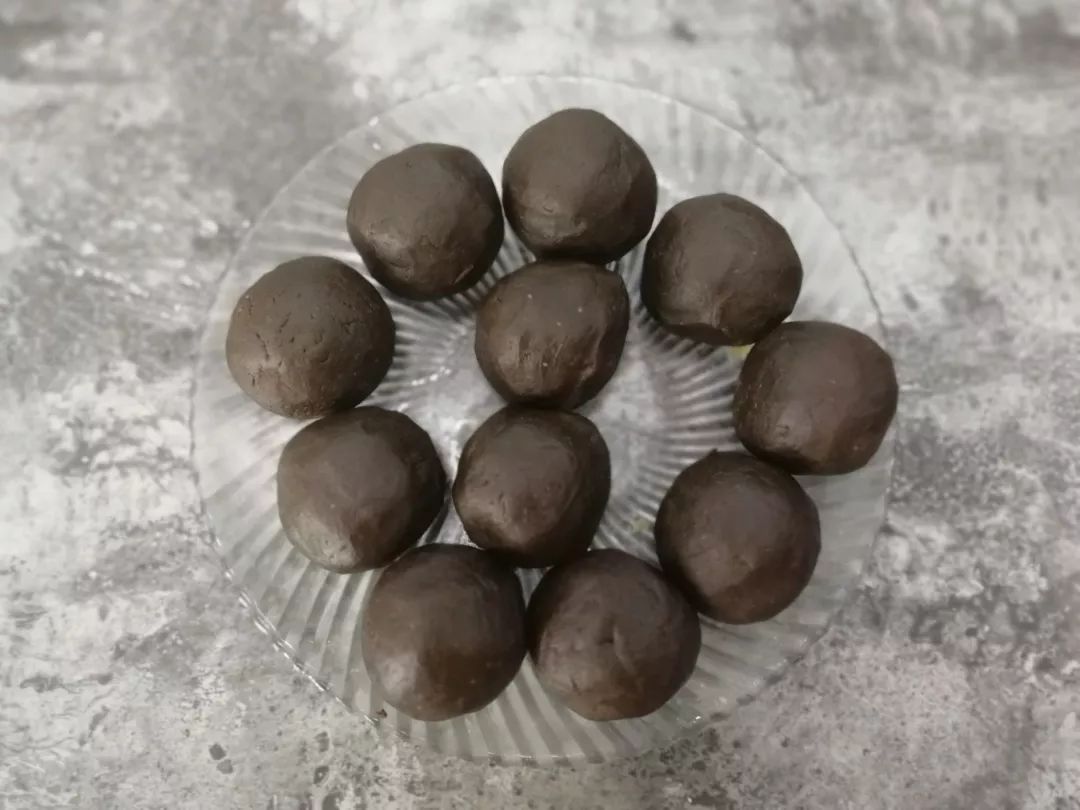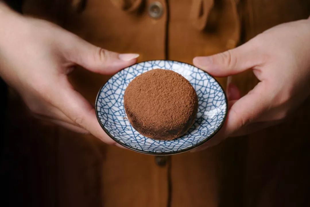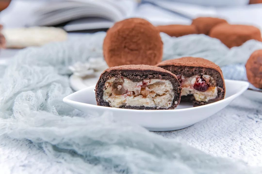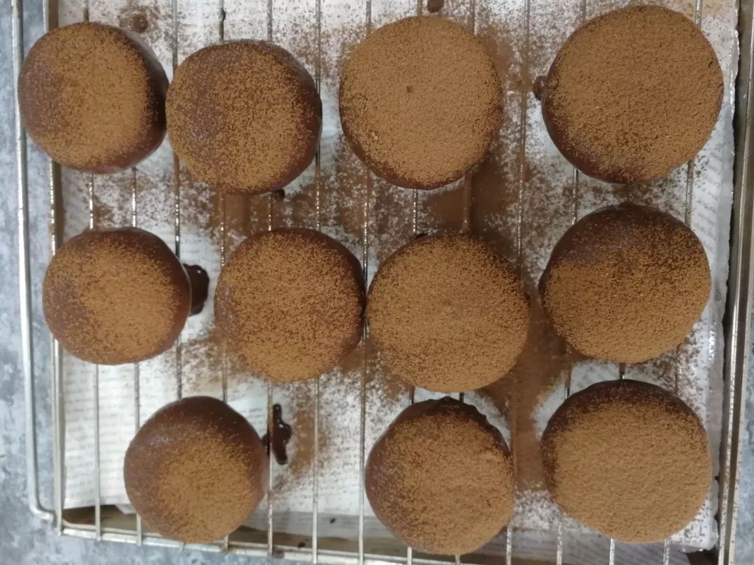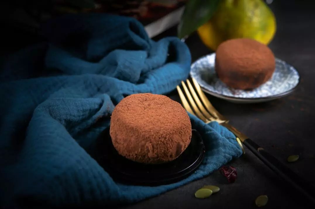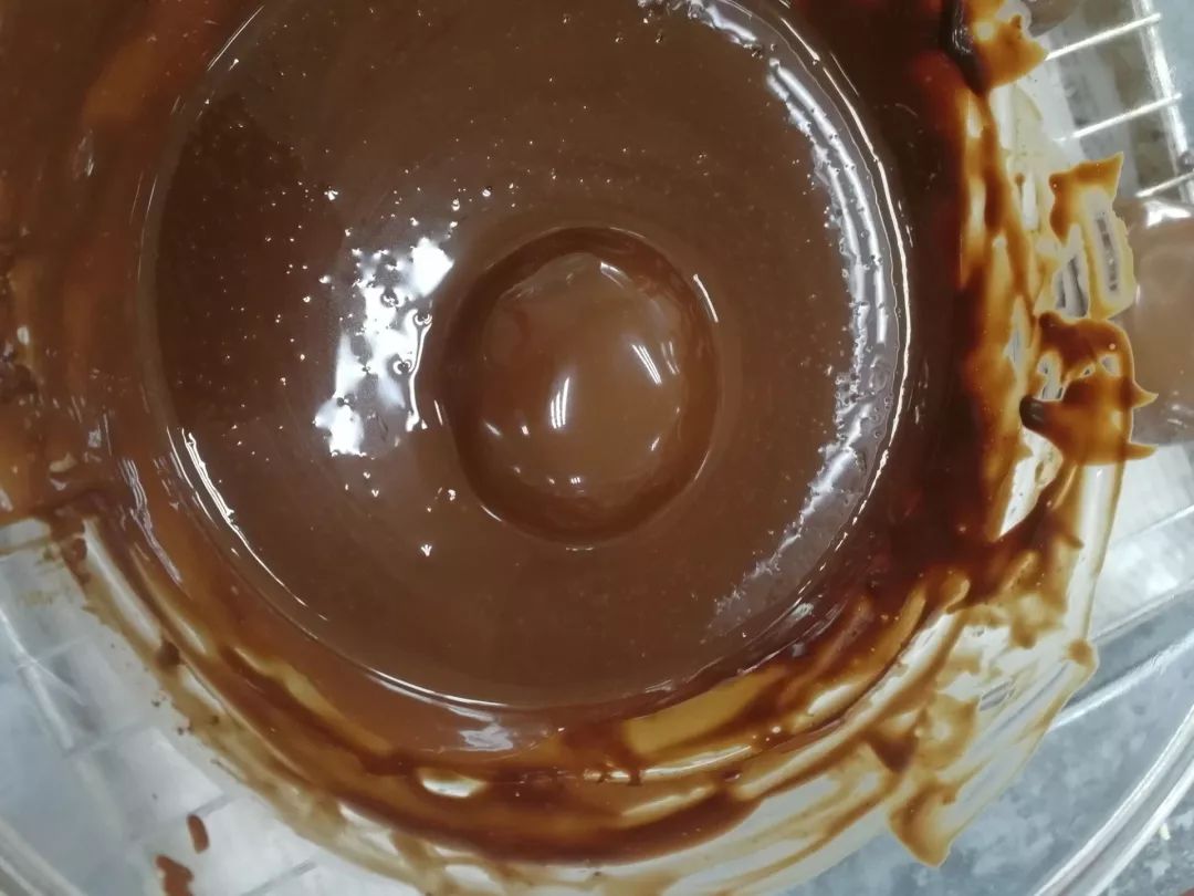 将烘烤后的月饼凉晾在巧克力淋面里面沾一圈;
