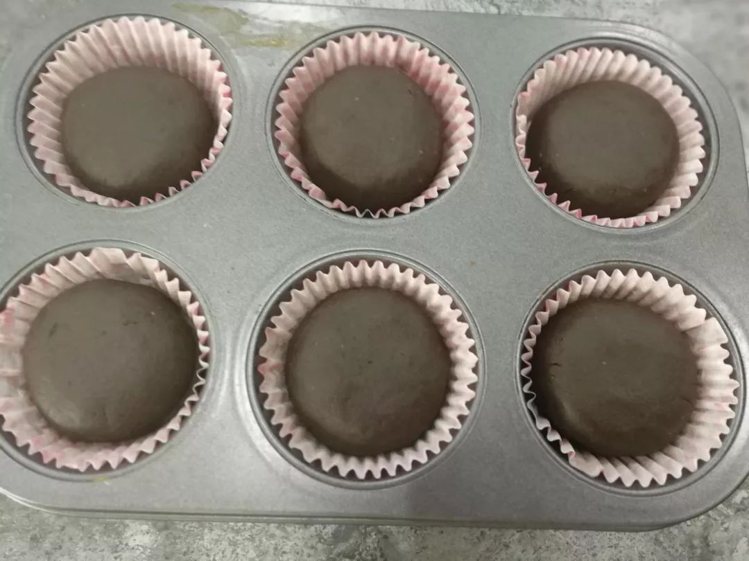 月饼放入纸杯,纸杯放入模具,烤箱烘烤;