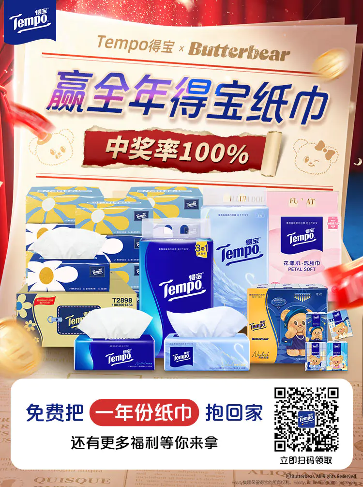 来赢店铺好礼,免费把一年份纸巾抱回家!