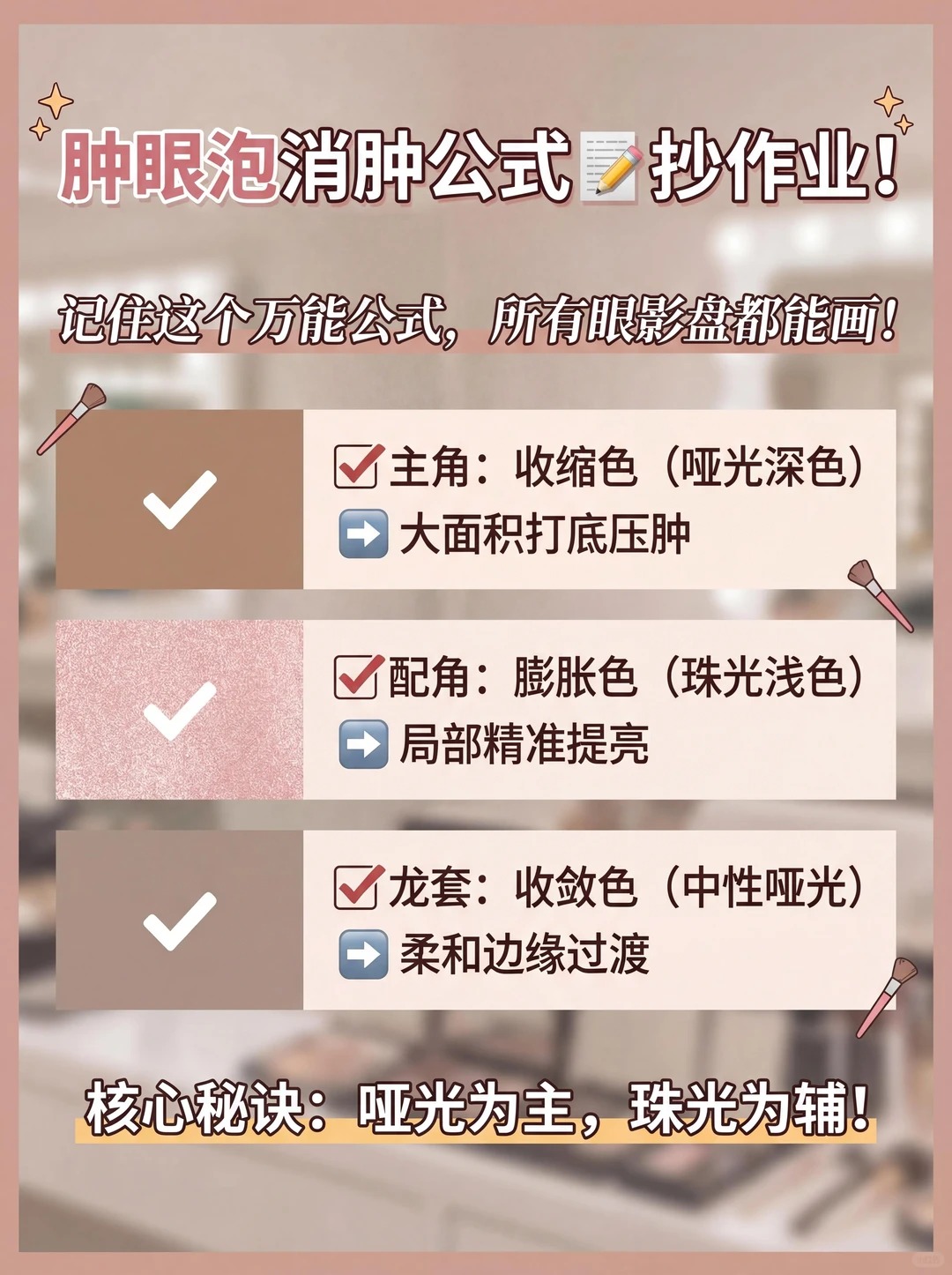 姐妹们!是不是早八人起床眼睛肿成金鱼眼?😭 眼影越画越肿,珠光大闪片更是灾难现场?