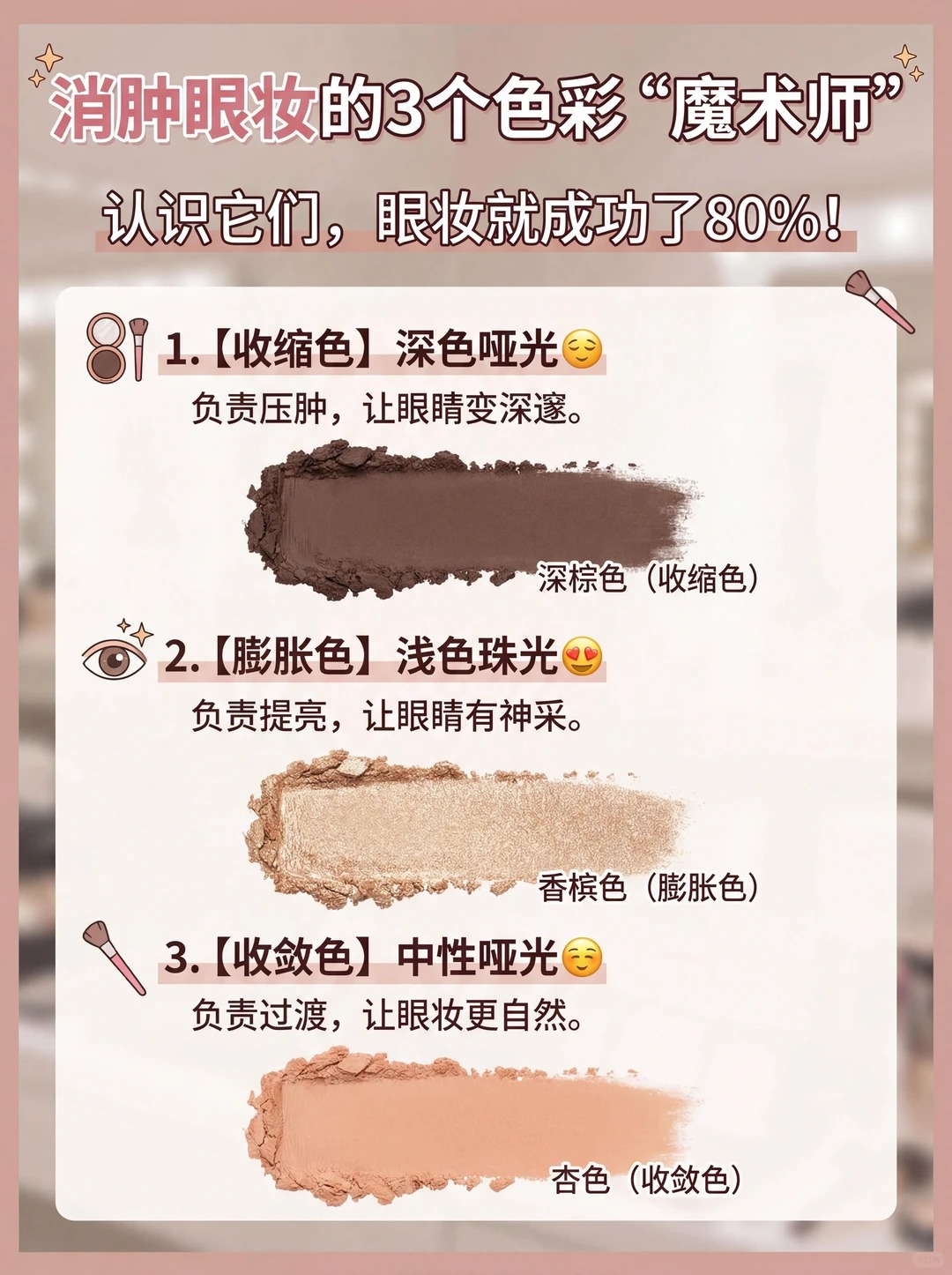 别怕!今天就来揭秘肿眼泡的「色彩密码」🔑,只需要搞懂3种颜色,就能轻松画出深邃又消肿的神仙眼妆!手残党也能秒会!
