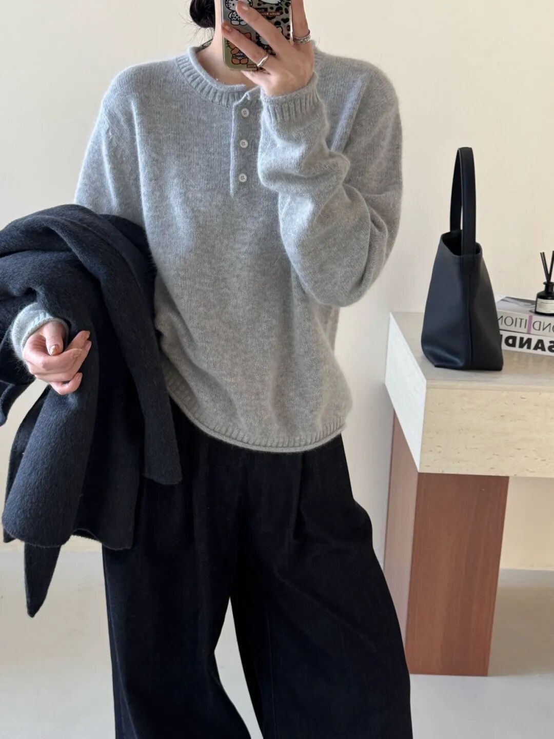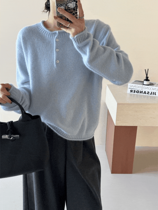 今天我给大家重磅上新的,是绵羊毛+羊绒混纺的亨利领拉绒毛衣~