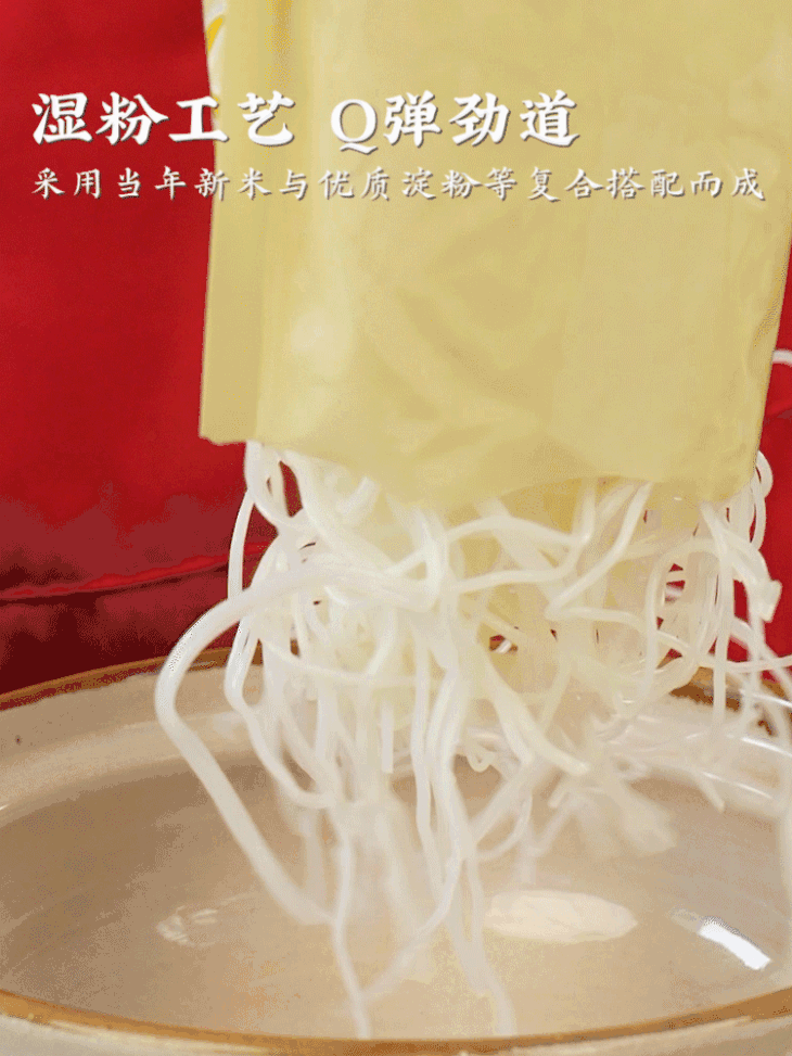 和酸辣粉一样,这次的米粉也是采用的湿粉,可泡可煮,口感也更加筋道、顺滑,吃起来QQ弹弹
