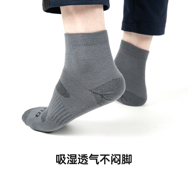 推荐理由:莱卡弹形纤维,足弓稳固设计,头跟补强耐穿,耐洗耐穿。透气网眼编织,抑菌消臭吸湿速干。