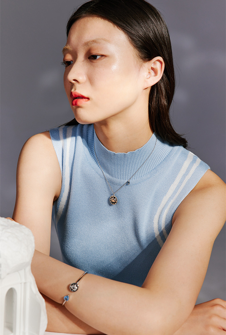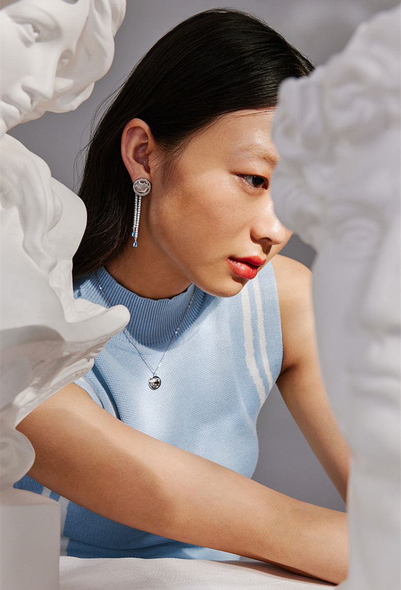 KADER KT希腊系列x 散落群星耳钉,蓝色锆石如同汪洋星系,而群镶白锆则象征着散落天边的无数星辰,璀璨的光闪烁迷离!