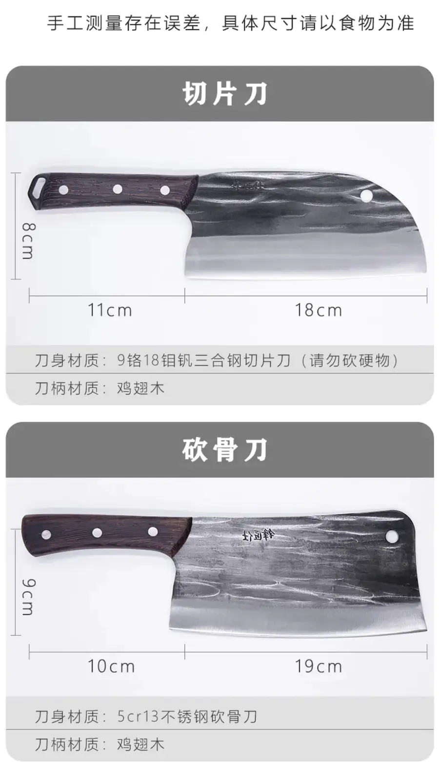 𝟚 砍骨刀:沉而有力,刚柔并济,专用来斩鸡剁骨,斩鸡轻轻松松。