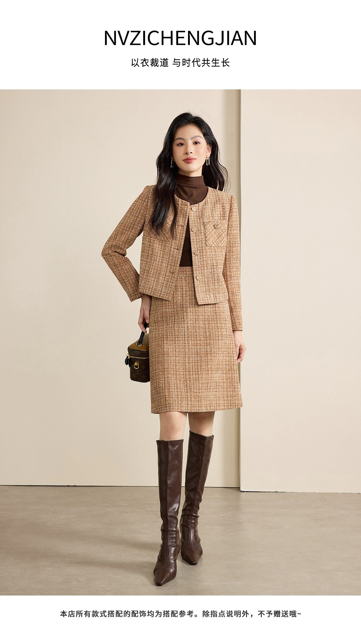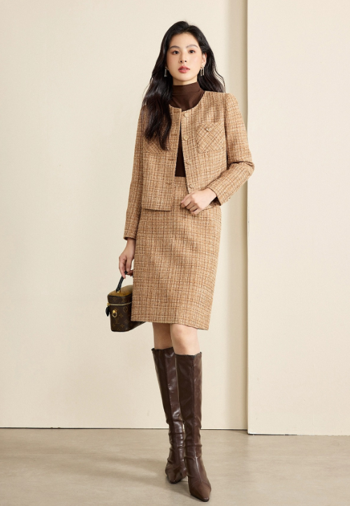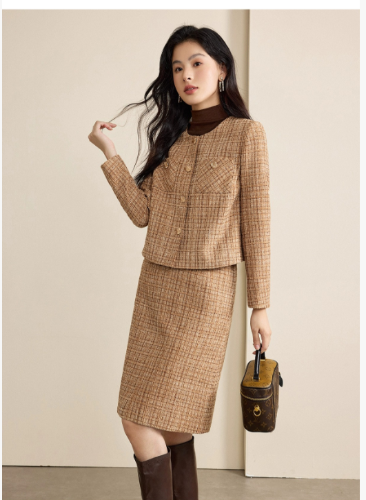 当秋冬的冷意渐浓,衣橱里总缺一套「既有温度又撑场面」的穿搭——而这套咖色格子小香风职业套裙,就是这个季节的优雅答案