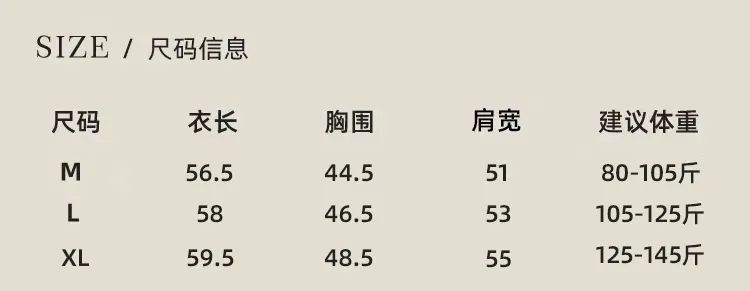 尺码如下,轻松搭配任何下装,不管怎么搭都好看!实现真正的穿衣自由。