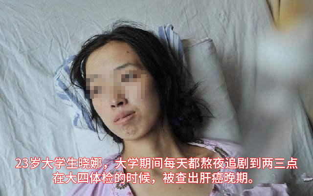 真实案例:湖北23岁女大学生晓娜(化名),大学期间每天熬夜追剧,在大四找工作入职体检时,被查出肝癌晚期,最终不幸逝世。