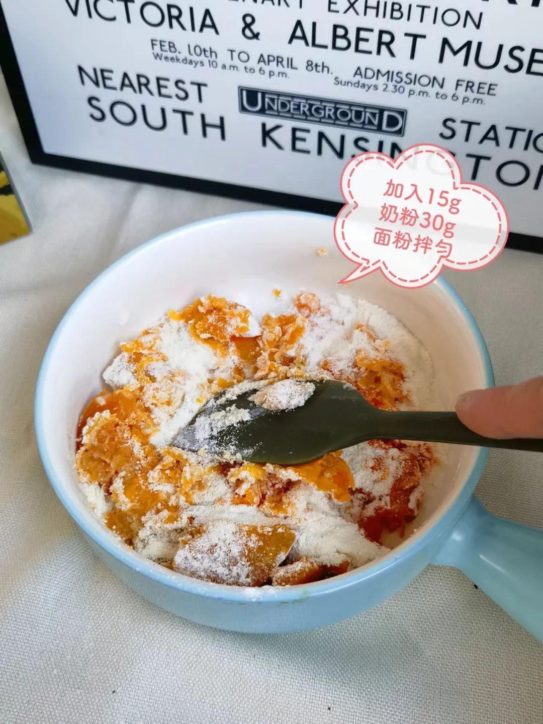乐荷有机干酪、红薯100g 、奶粉15g、面粉30g