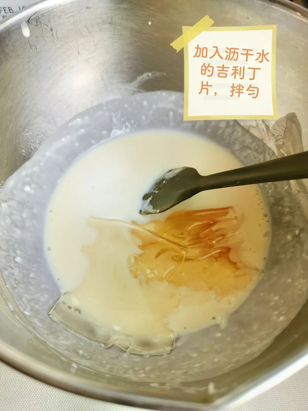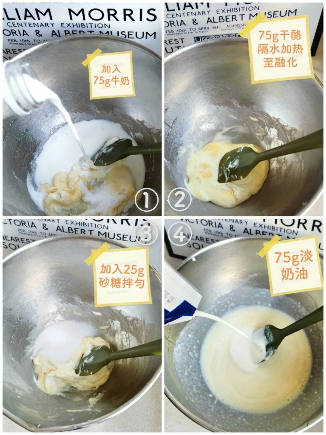 ② 把2块奶酪切刀和红薯泥拌在一起;