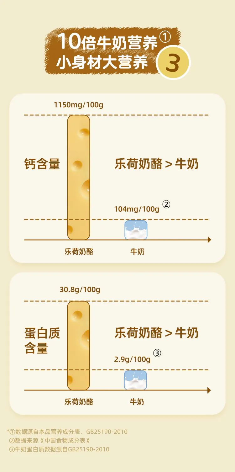 妈妈完全可以大胆启用奶酪去代替牛奶——小小一颗,轻轻一撕,嘴里一放,奶香四溢,香咸可口。宝宝营养小零食,小小一个,大大能量~
