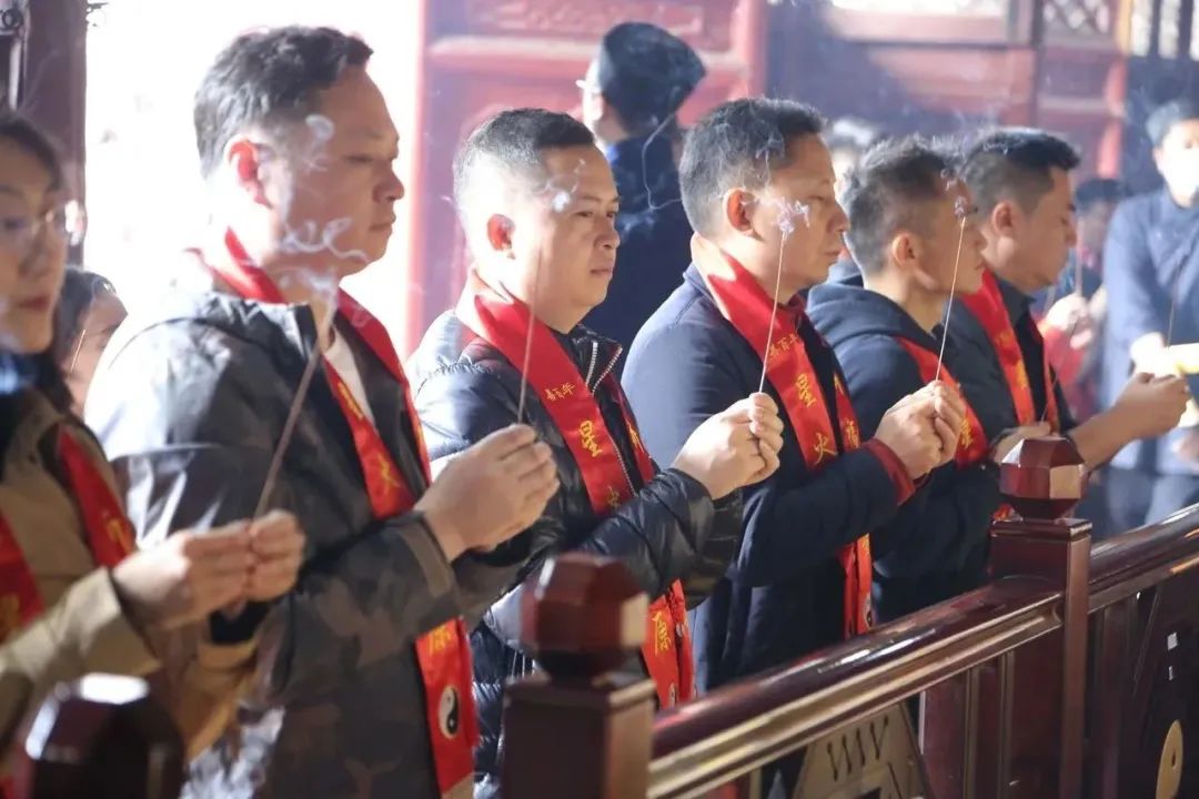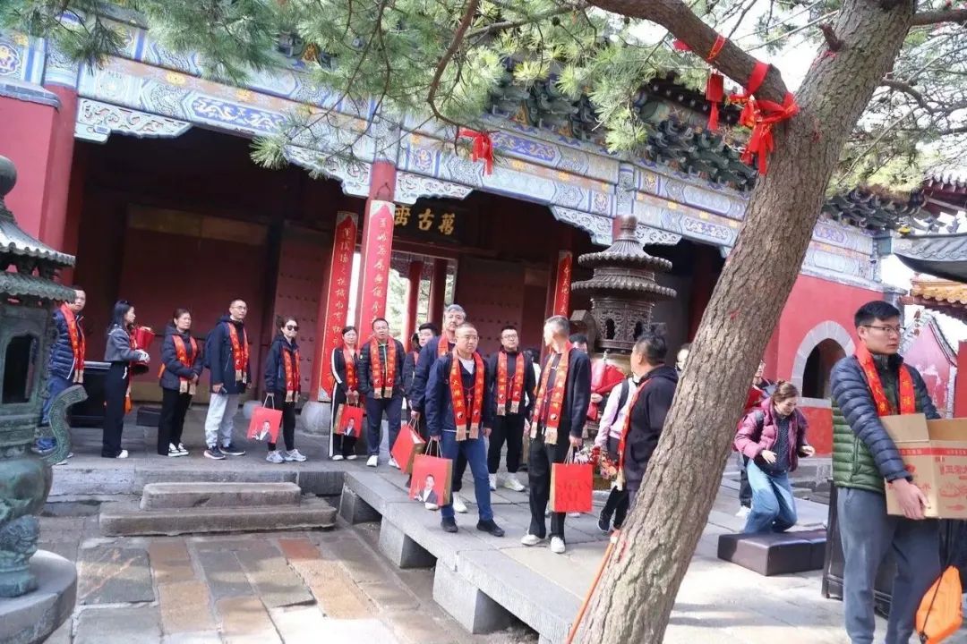 在泰山山顶碧霞祠,在精心筹备的祈福大典上,善百年的家人们集体祈福:祈愿众人平安喜乐,祈愿2023年兴旺发达,祈愿众人得善百年。