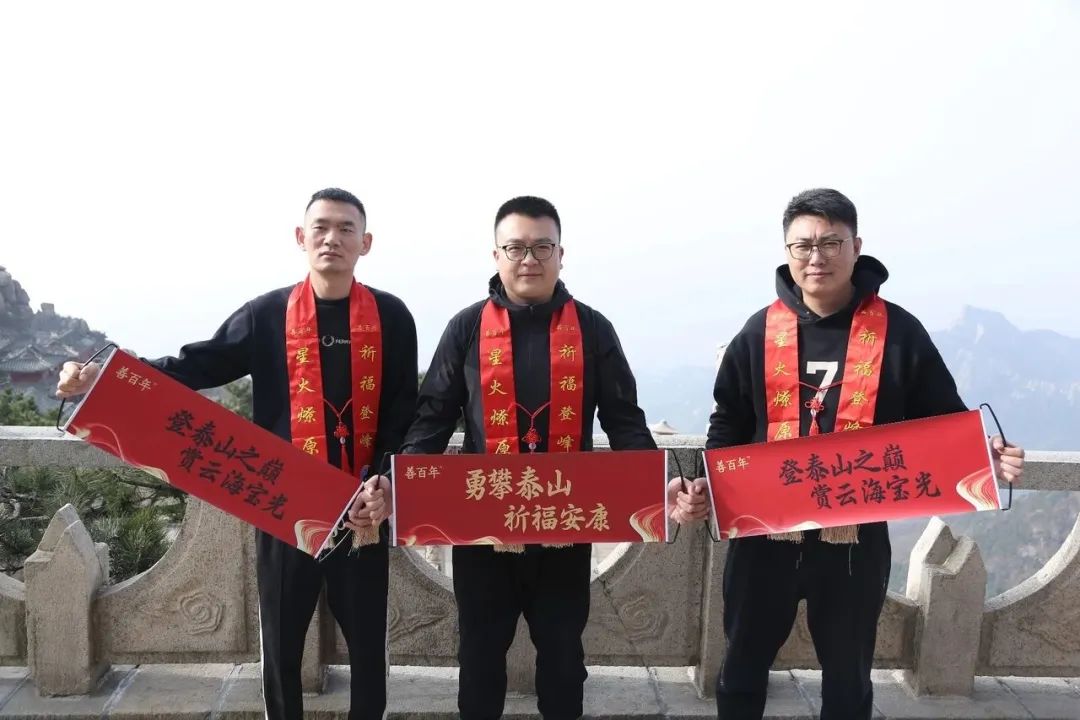 日出东方,祈福登峰。在善百年董事长傅煜的带领下,公司核心股东及合作商、公司高管们成功登顶泰山。