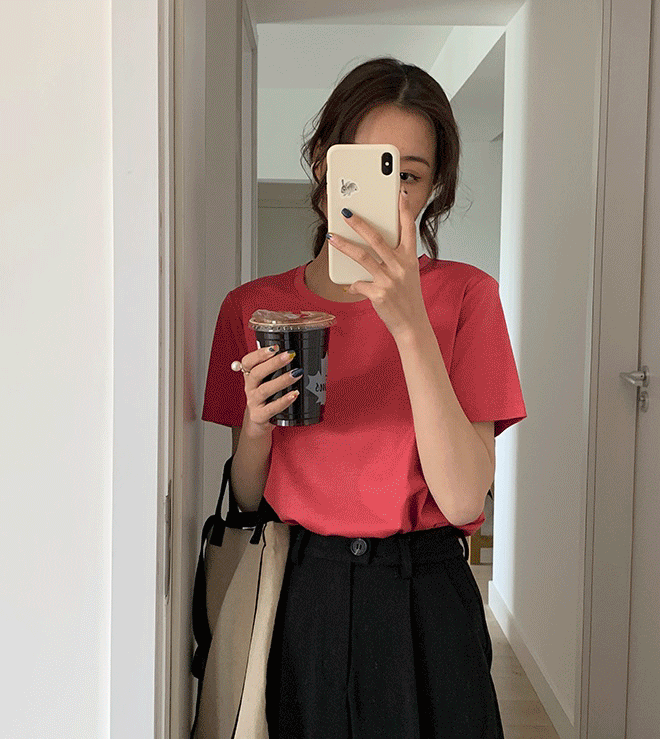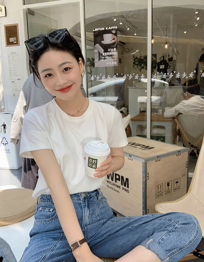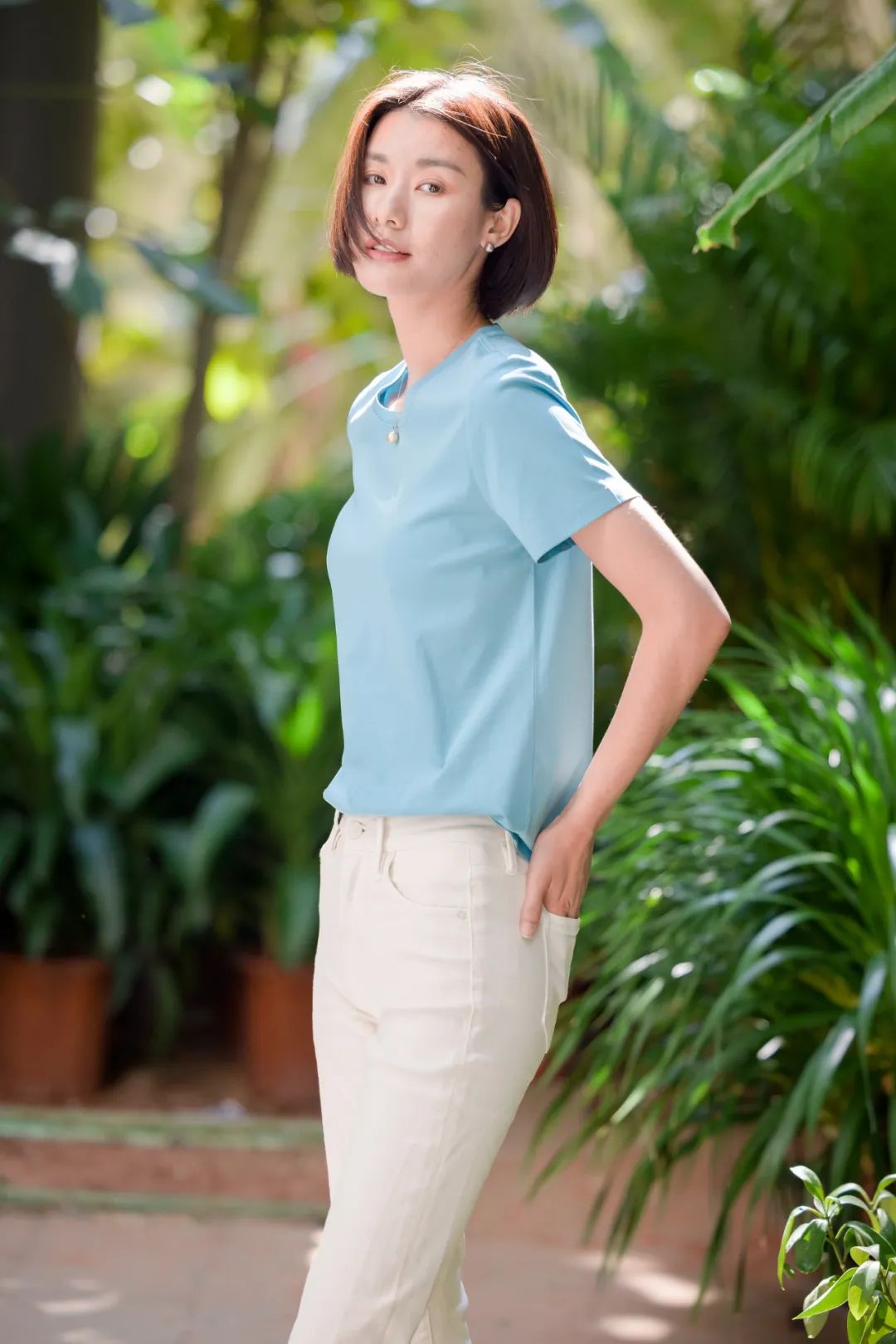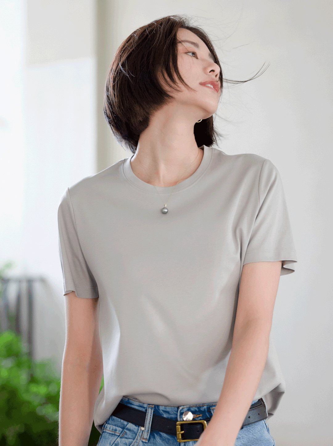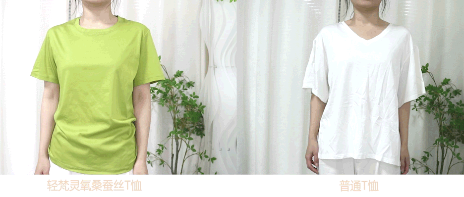 即使是爱出汗、爱运动的姐妹们也能穿着,因为这款T恤的面料是用特殊工艺制作出凉感、免烫的属性。