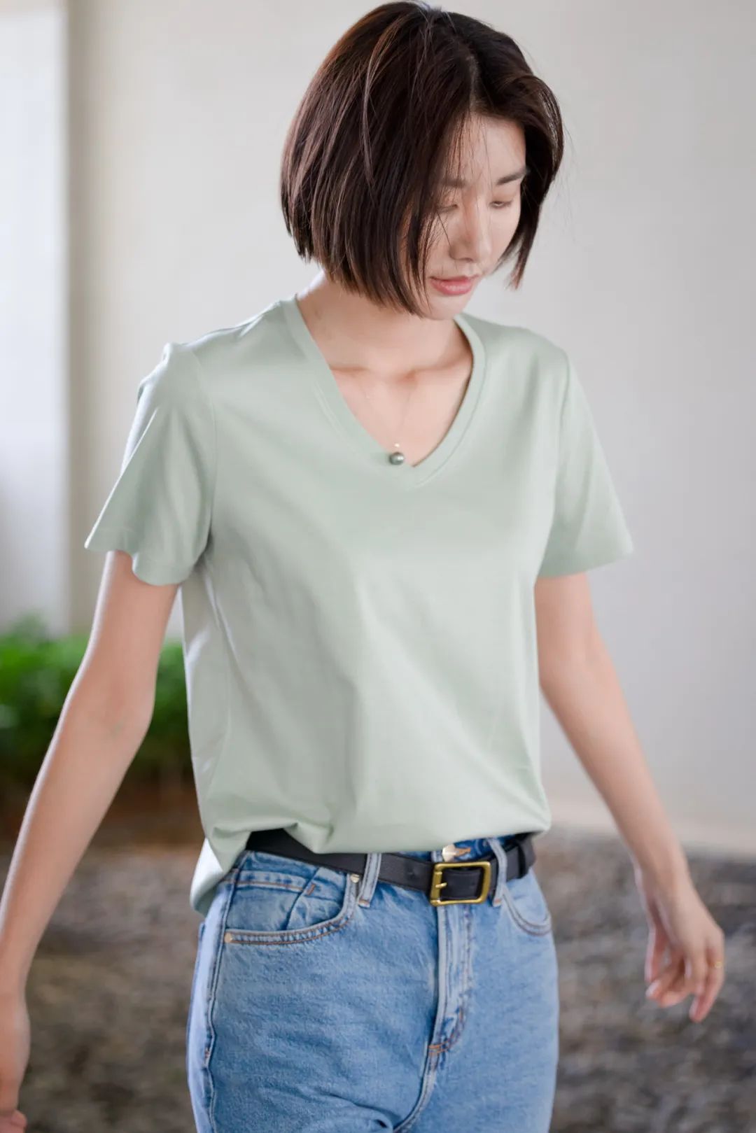 考虑到这一点,所以这次给大家挑选的T恤,在柔软的长绒棉的基础上,加入莫代尔和桑蚕丝。