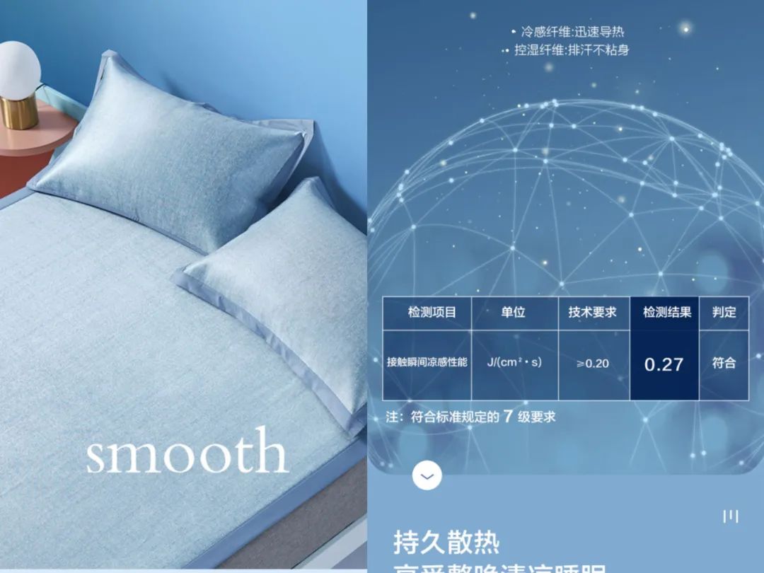 要知道,很多人夏天睡买的凉席,接触瞬间凉感性能也大多在0.27~0.28左右。