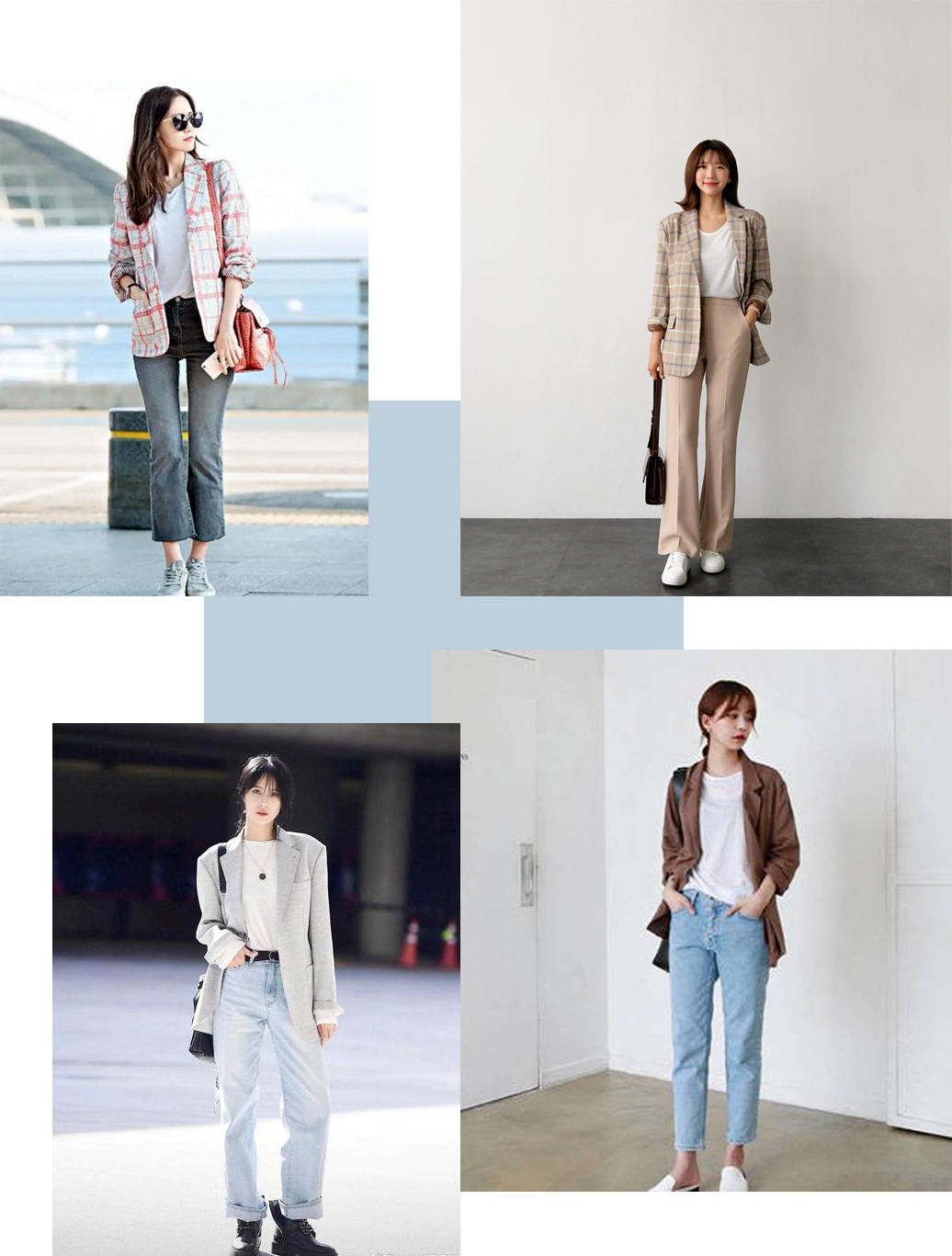 上班穿担心过于休闲了,还可以外搭件西装,增加正式感。