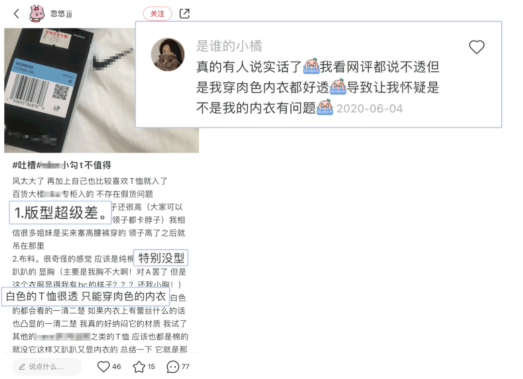 关于“普通行外人”买衣服的心得,随便翻翻帖子,也能看到很多朋友吐槽T恤难买、设计师不懂我们需求的发言: