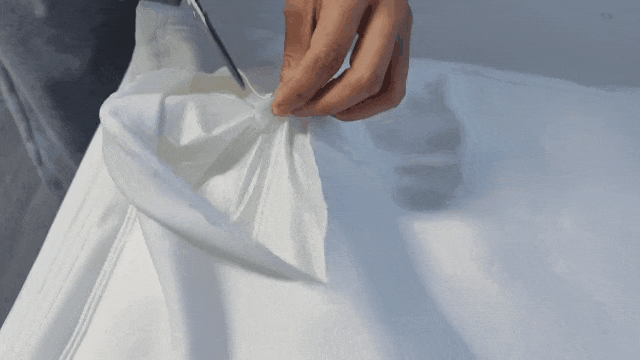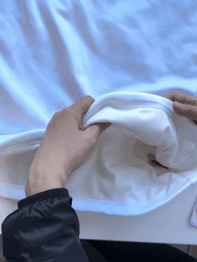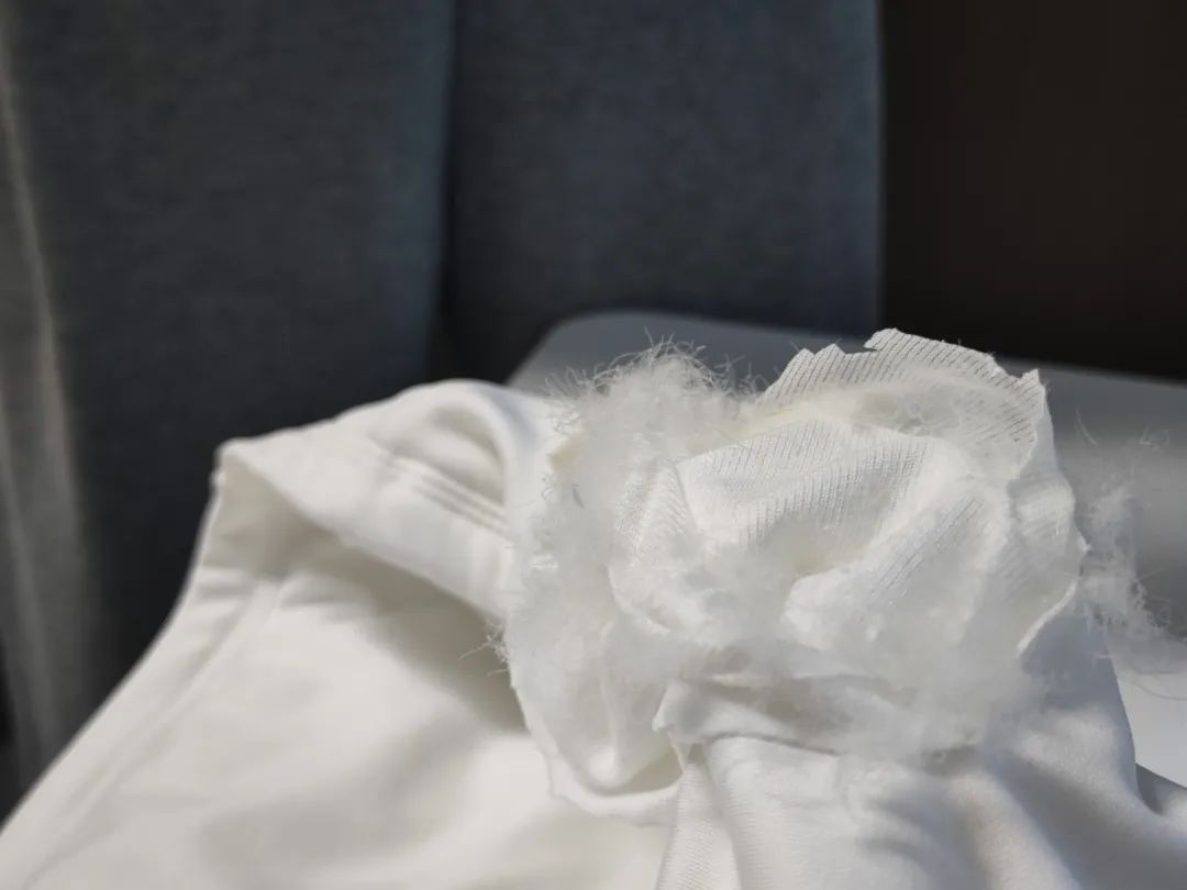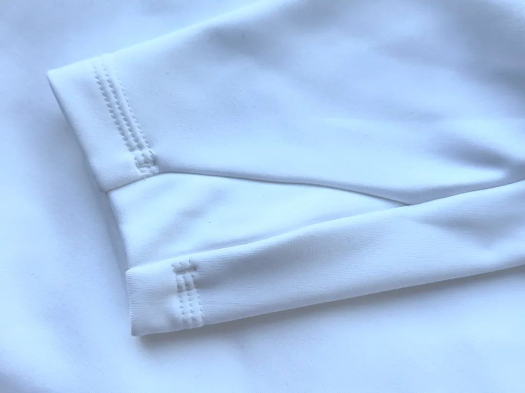它看起来就是一件普普通通的长袖白T,捏起来也不是很厚。
