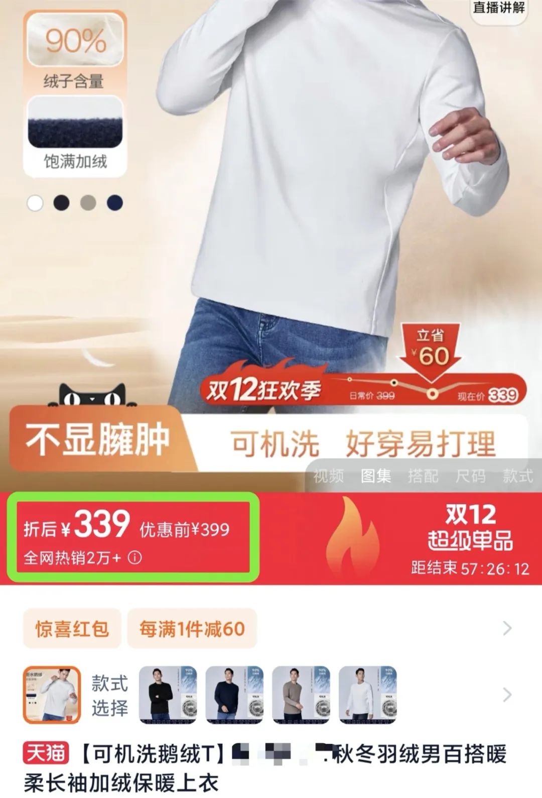 到手价只要129,一件某宝鹅绒T的价格能在我们这买两件,还有得找