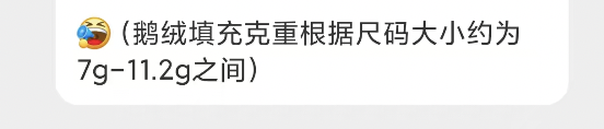 (别看数值不大,要知道很多四五百的鸭绒羽绒服,充绒量也只有 100g多一些。