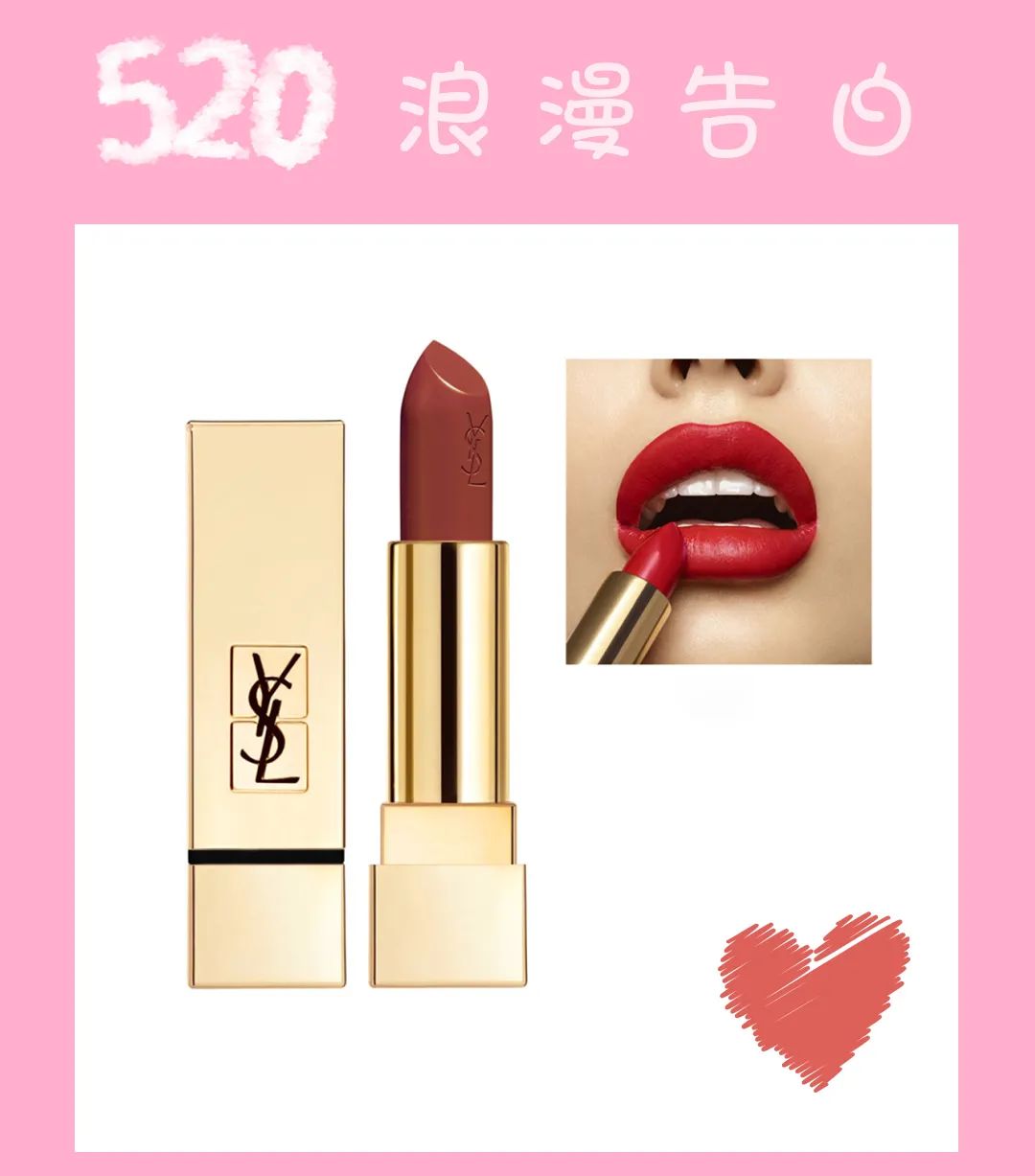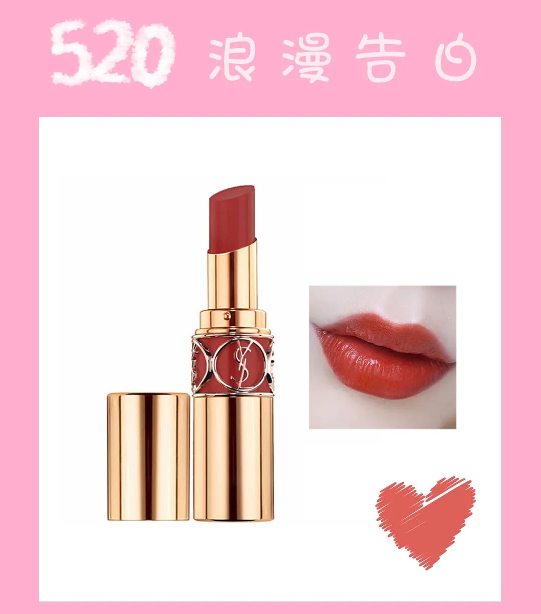 口红作为历史悠久的表白利器!在这个特殊的节日当然非它不可啦!Ysl家的圆管外观非常有质感,膏体是淡淡的水蜜桃味,上嘴的质地是非常柔润的,不干不卡色!