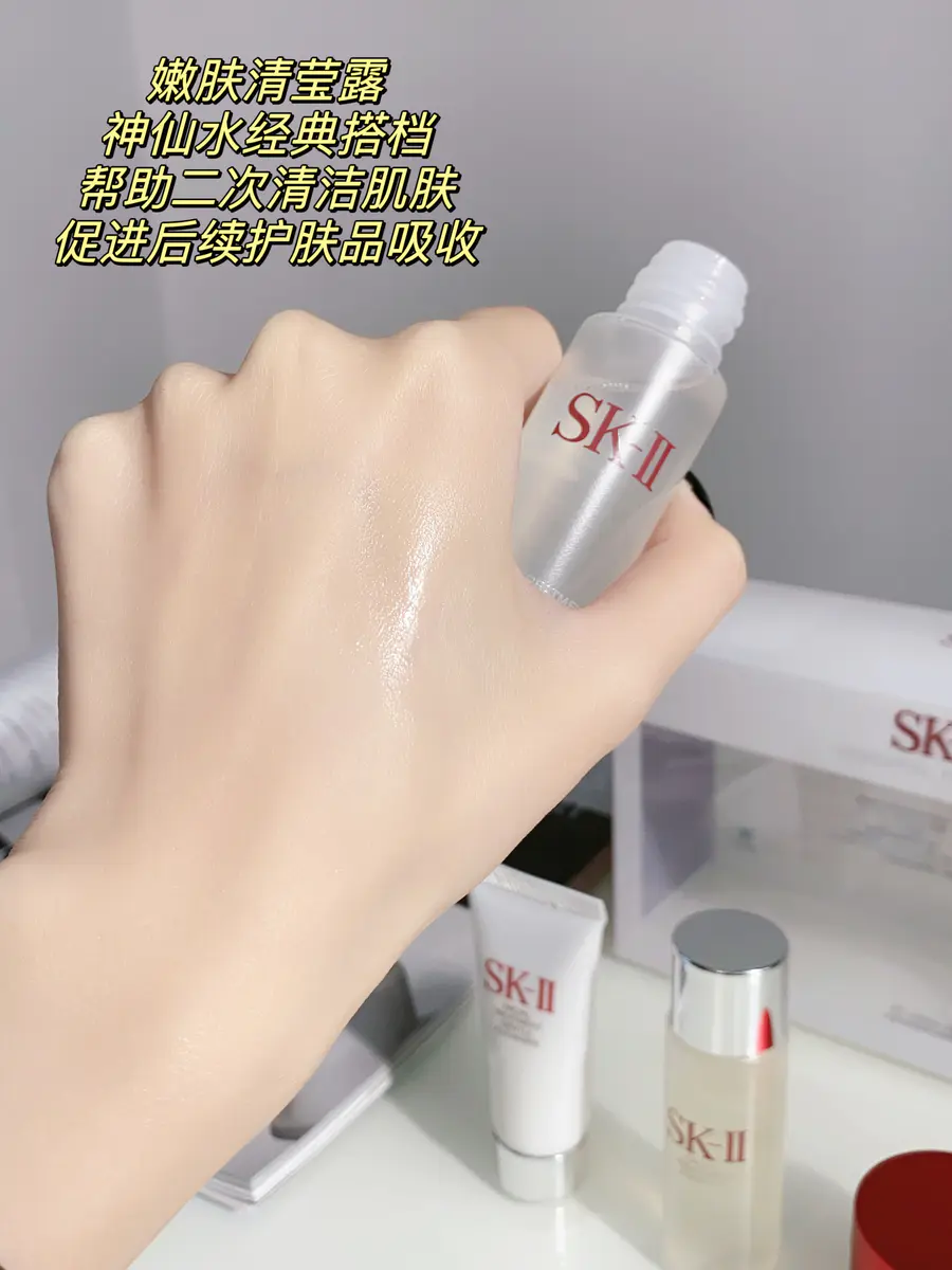 2️⃣Skll嫩肤清莹露30ml:具有二次清洁的作用,质地清爽,它与神仙水是完美搭档,让神仙水更好的发挥功效