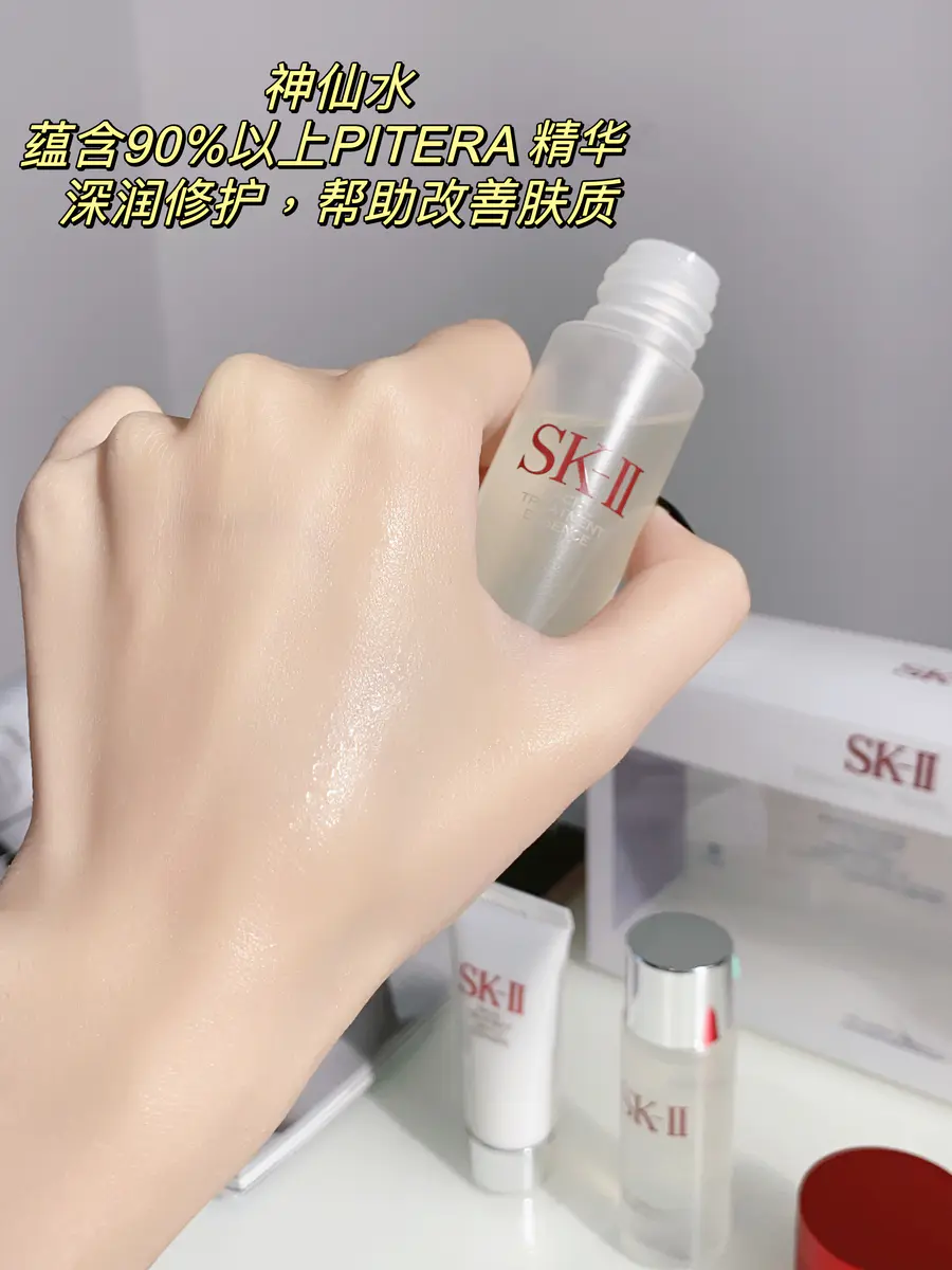 1️⃣Skll神仙水30ml:质地轻盈,有效改善并抚平痘肌,上脸吸收特别快,修护力也很强