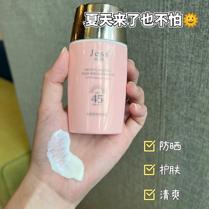 名后水感透亮防晒乳是一款物化合一的防晒,双重防护,一点光也不放过!稳妥防晒黑晒老~SPF45、PA+++,能在太阳热烈的时候用上这么棒的防晒,简直是一场及时雨。