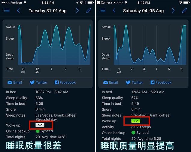 睡眠质量很差,细小声音就能吵醒我。喷OliBer口服液后,用软件监测,睡眠指数明显提高、屋外汽车喇叭都没吵醒我!