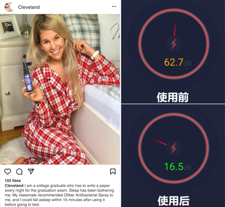 这瓶Oliber解放了我的耳朵!老公睡前喷完它,再也不打鼾了!睡眠噪音从62.7下降到16.5!
