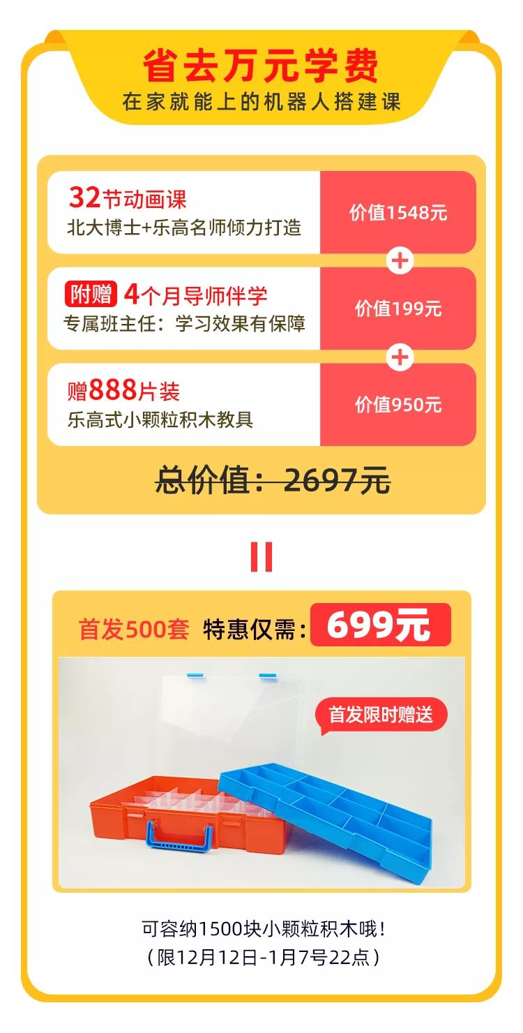 一句话说就是:花了不到线下3节课的钱,就可以让孩子学上近半年的课,还赠送定制版配套教具。