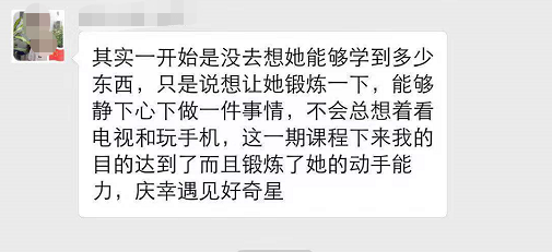 综合来看,整个学习过程,给到孩子的不光是一项技能,而是多了一些思考问题的角度,培养了一些难能可贵的思维。