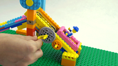 看到冒险船爬坡没?这个过程会带孩子们掌握“惰轮结构”和“皮带传动”哦: