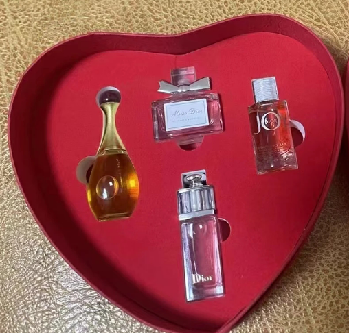 2、一盒四支热门香,甜美、优雅、性感、魅惑,你想要的它都有迪奥Dior有着近百年的历史,迪奥公司是由法国设计师克里斯汀·迪奥先生创立。迪奥从开创品牌以来都是华丽与高雅的代名词,一直走着高端市场。无论是高级珠宝、腕表、服装、包袋再到香水美妆,迪奥一直最懂女人心!1947年Christian Dior 创办时装屋,同年推出香水,至此打开“通往新世界的大门”。就像他说的:“哪怕你仅在香水旁边逗留一会,便能感受到我的设计魅力,我所打扮的每一位女性都散发出朦胧诱人的雅性。”无论你是不谙世事的少女,正值浪漫的花季,还是满载阅历的成熟女性,迪奥的这份法式慵懒,让无数女性沉迷。直接虏获万千女人心,每出品一款都会被定义为“女人都逃不过的经典香水”。历来给Dior代言的明星,都是顶流中的顶流,比如查理兹•塞隆、娜塔莉波特曼。不管是欧美圈还是国内,超多明星都是迪奥的忠实粉丝~这盒迪奥香水爱心四件套一共有四支热门香水:迪奥真我浓香、花漾甜心淡香水、魅惑淡香、悦之欢淡香!真我浓香有着甜美的花果香调,低调又有内涵,高贵优雅!
