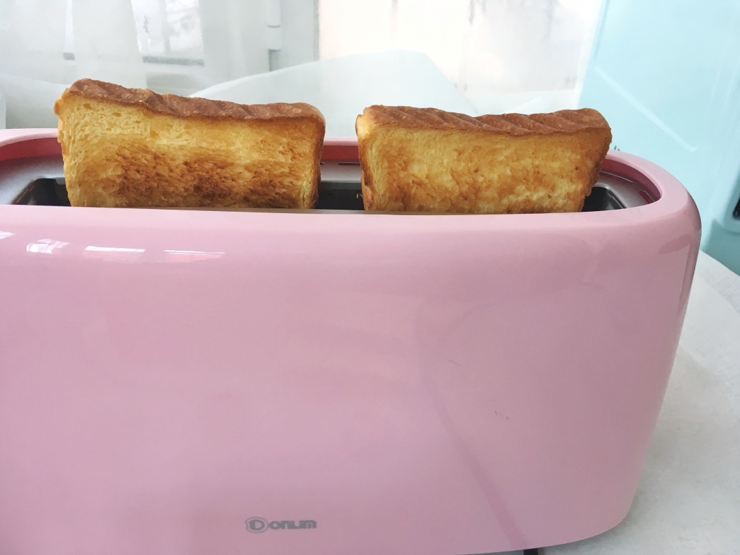 2、将准备好的土司放入多士炉内2档加热,面包烘烤好后,会自动弹起