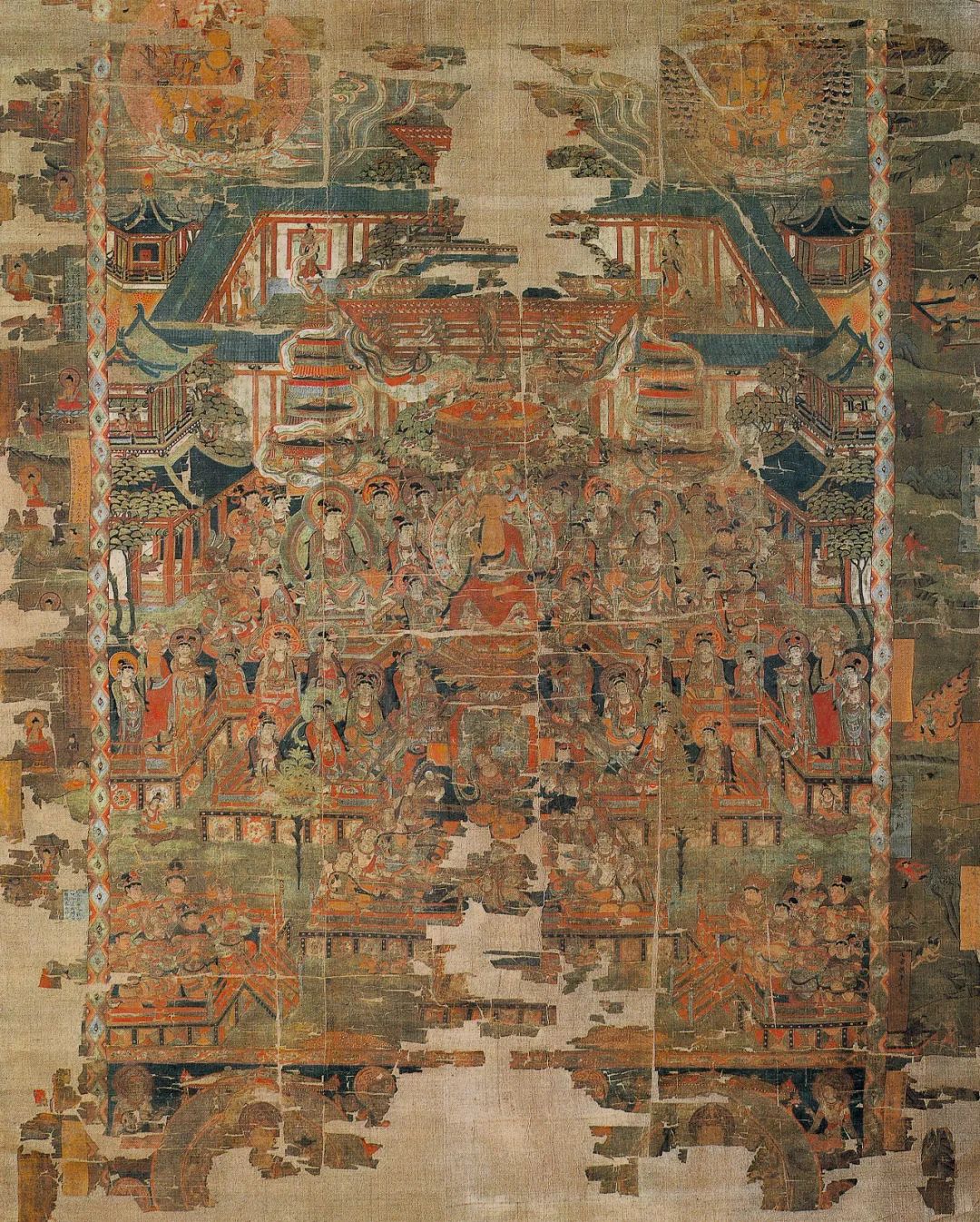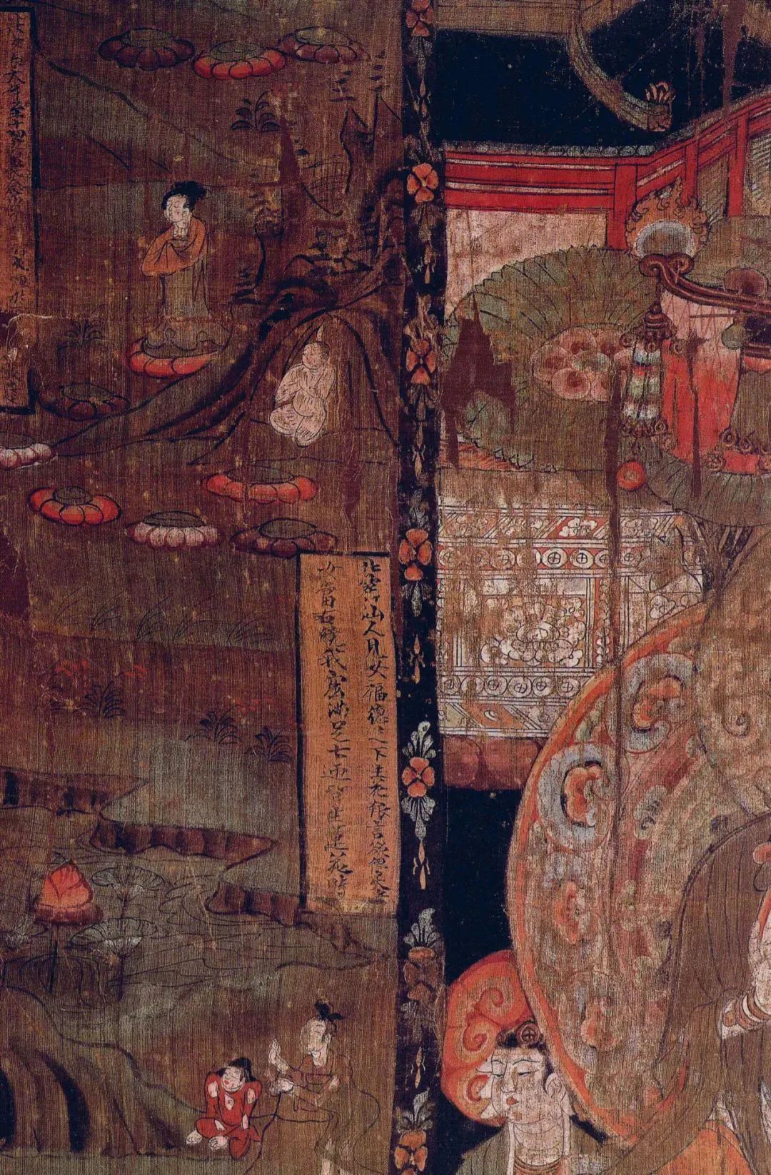 这些经变画多数场面较大,以说法场面为中心,周围配置华丽的殿堂宫阁、楼台宝池,或者描绘山水风景,经文内容与个人生活经验、细致感受相结合。