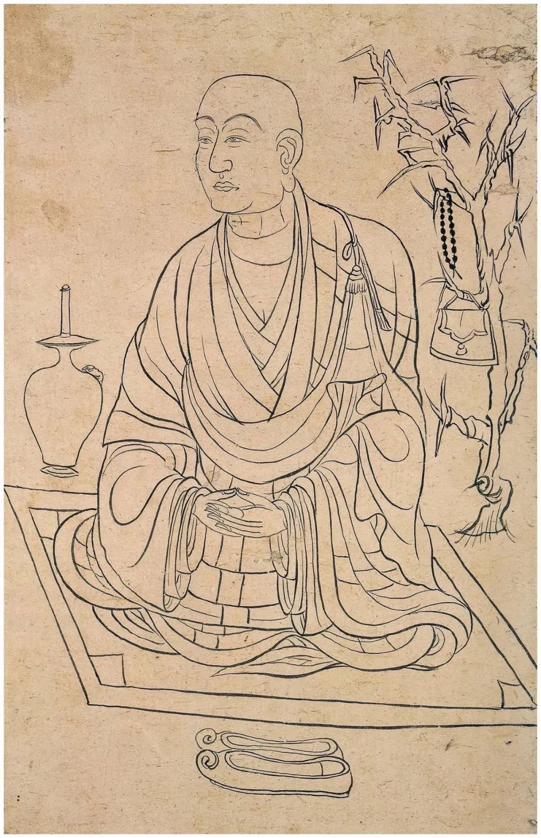 衣褶的勾描,起收两端均为露锋出笔,沉密而飘逸。寥寥数笔即将人物的体肤之感传达无遗,不得不令人叹服——或许就是著名的“曹衣出水”风格之遗法。