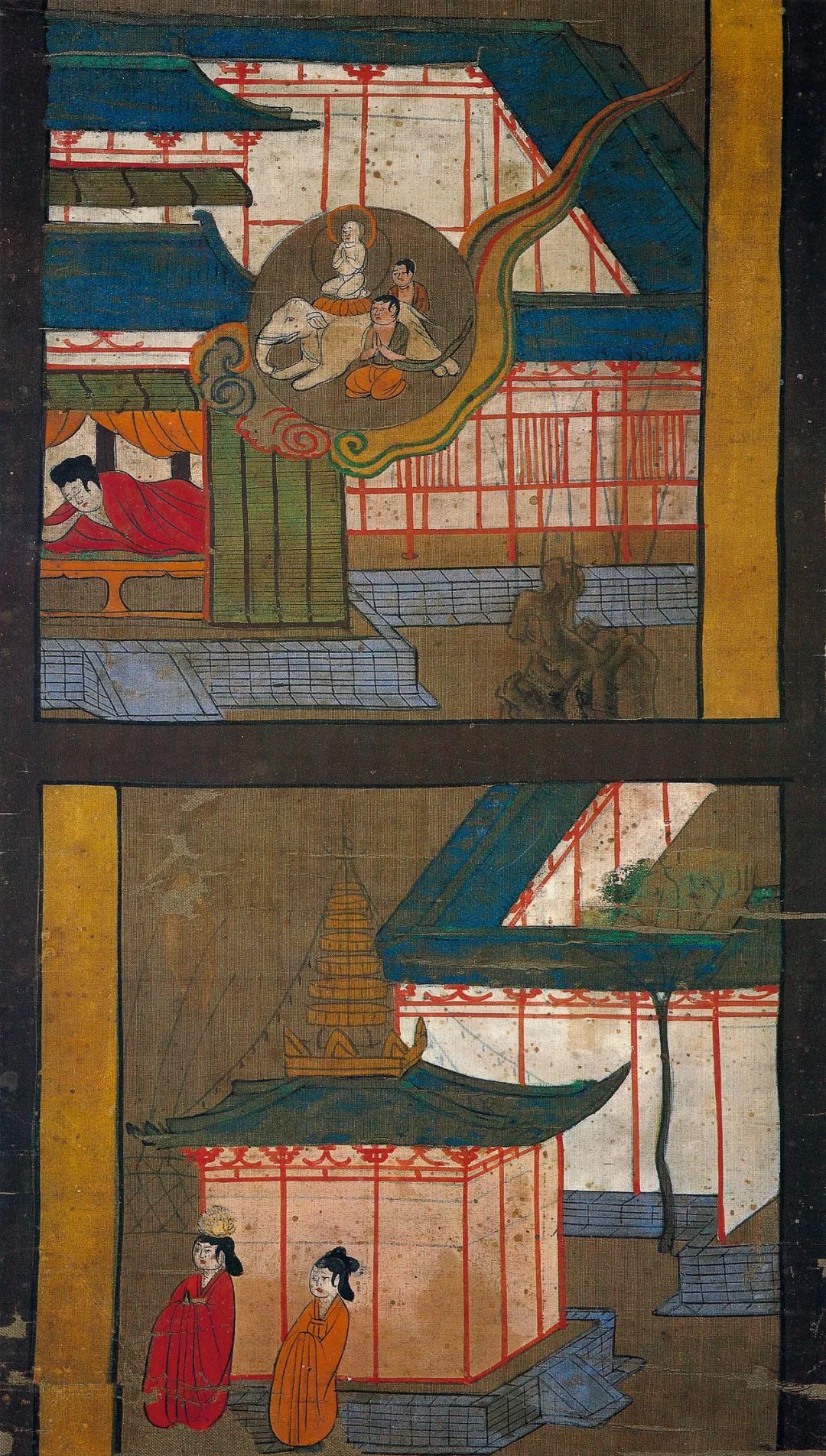 只看这幅《报恩经变相图》,一幅画中却容纳了须阇提太子,鹿母本生,善友太子以及恶友太子等故事,并融入了无数建筑和纹样的细节。