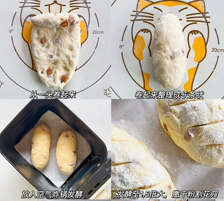 ❸放入空气炸锅发酵,发酵至1.5倍大,割花刀撒干粉,空气炸锅150度30分钟,中途随时观察翻面
