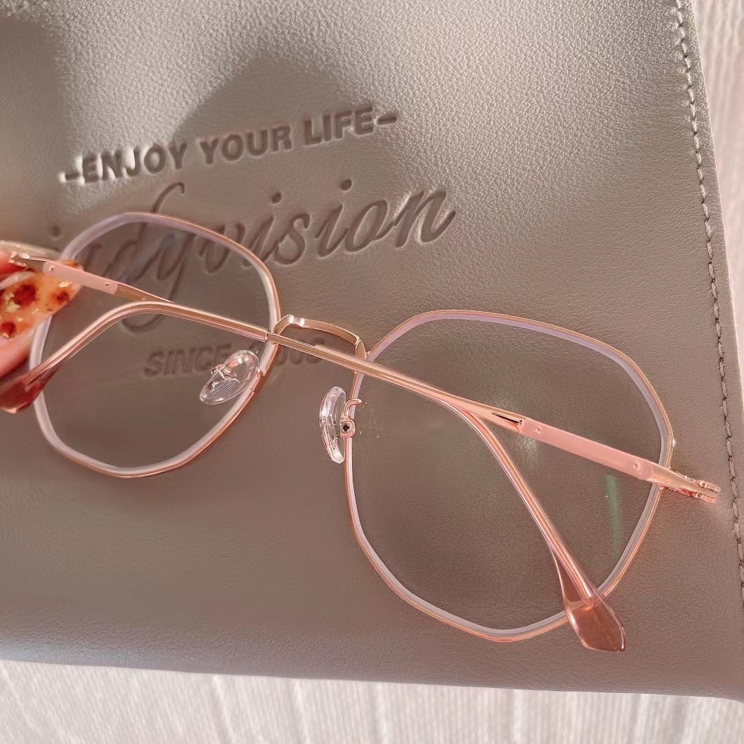 客配 多边 时尚框架 玫瑰金 525度+散光100/150度 1.67进口镜片