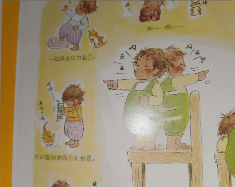 今天共读的是《 0-36月龄新手妈妈育儿绘本》一岁以后的部分,一岁以后的孩子会的越来越多,感觉每张画面都是描述的小火。