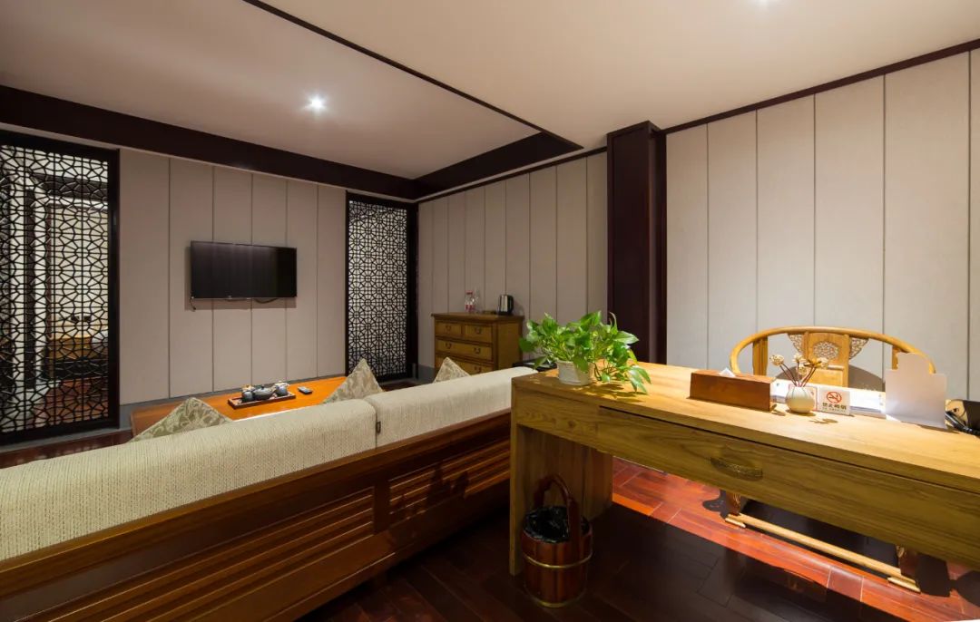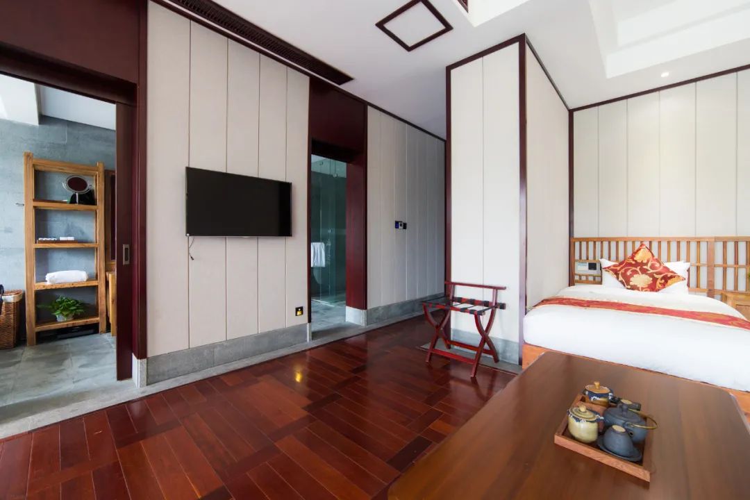 据说民宿的主人是摄影爱好者,酒店无处不以摄影艺术的角度,细细打磨酒店的庭院场景。苏式园林风格的水榭回廊,古意回归。