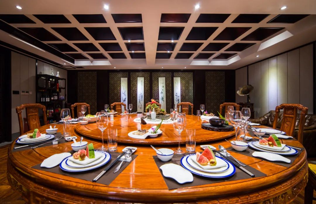 酒店的餐饮也极具特色。这里的厨师是著名的张忠良师傅,他原本是杭州香格里拉饭店中餐厅的厨师长,曾接待过连战、吴伯雄等台湾地区政要名人,也曾担任德国杜塞尔多夫中国城酒店厨师长。
