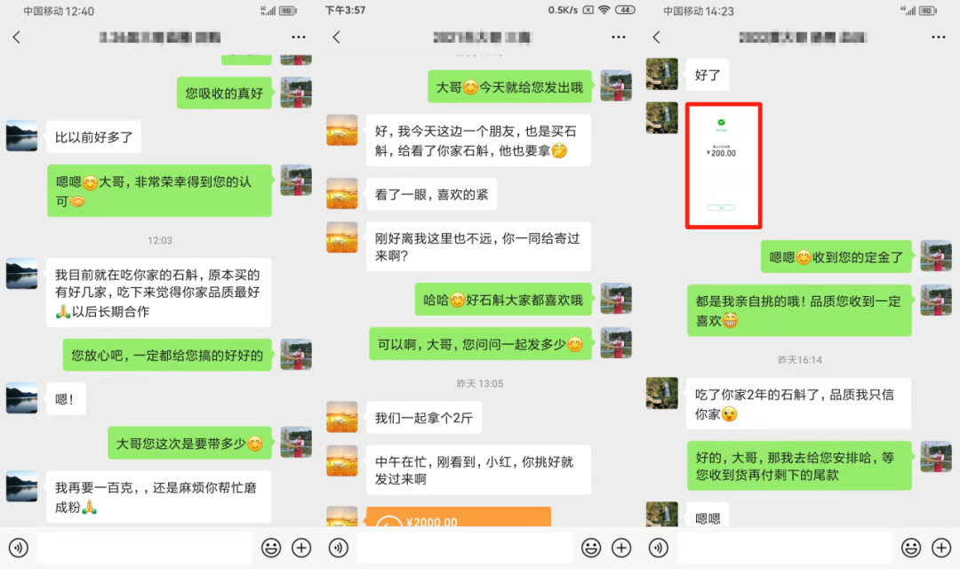 小红不太懂网络推广,更不懂说话技巧。但是她一直牢记父亲说的,有多大能力,办多大事,重要的是做一个真诚的人。宁愿1个客户买10次,也不要10个客户就做一锤子买卖。正如小红所说:“金杯银杯不如顾客的好口碑。”小红家的石斛好不好,全都交由顾客的反馈和评价来证明。