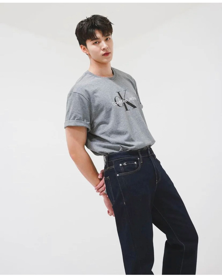 SLIM常规修身版型,自然风格水洗成衣,布标腰牌+猫须折痕