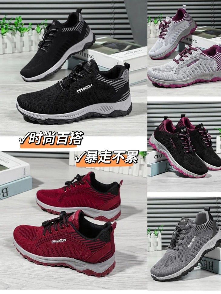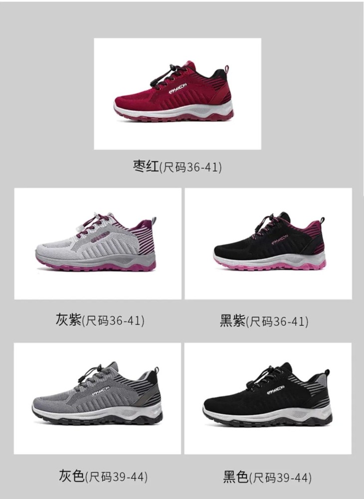 有2种款式,一款是男女同款的时尚健步鞋,一年四季可穿~