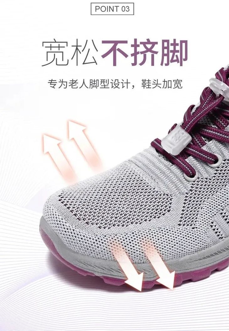 这条系绳是有弹力的,针对中老年双脚变形、臃肿而做出的设计。