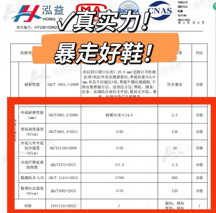 大家认准透梦家,这款鞋子的质检报告耐磨度均高于国家标准值,货真价实的暴走不累!